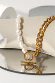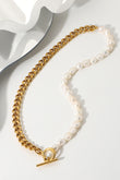 You're one step closer to your dream life with this lovely half-n-half necklace. It has imitation freshwater pearls on one side and a gold-plated chunky chain on the other side, with a toggle clasp at the front.