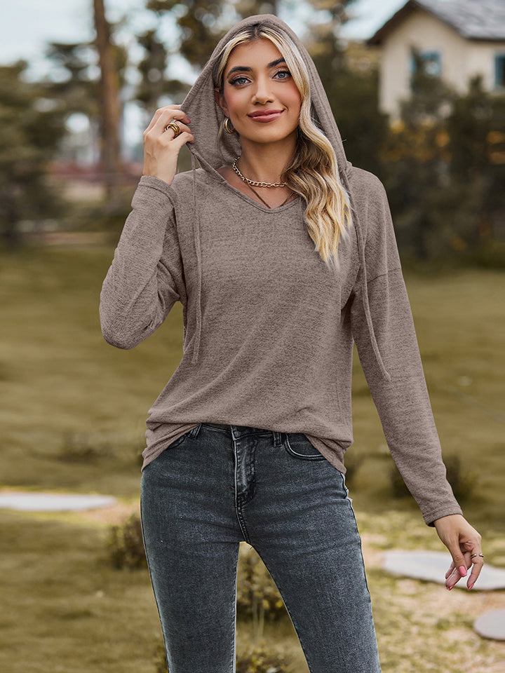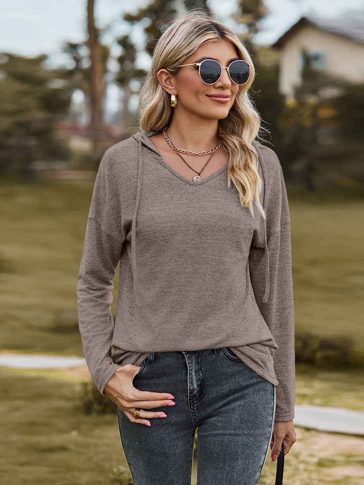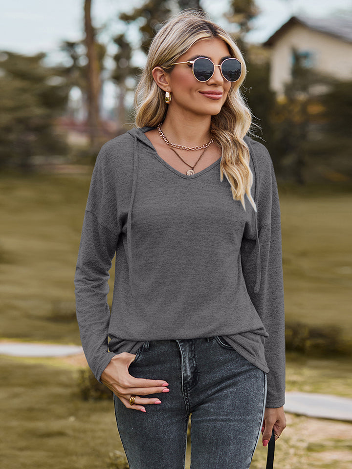 Dropped Shoulder Hooded Blouse