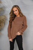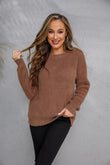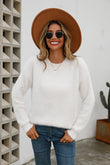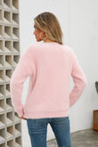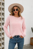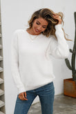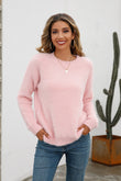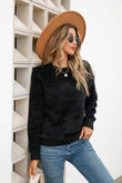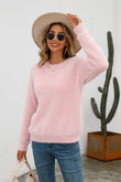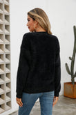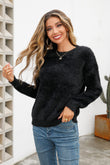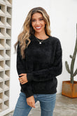Dropped Shoulder Round Neck Fuzzy Sweater