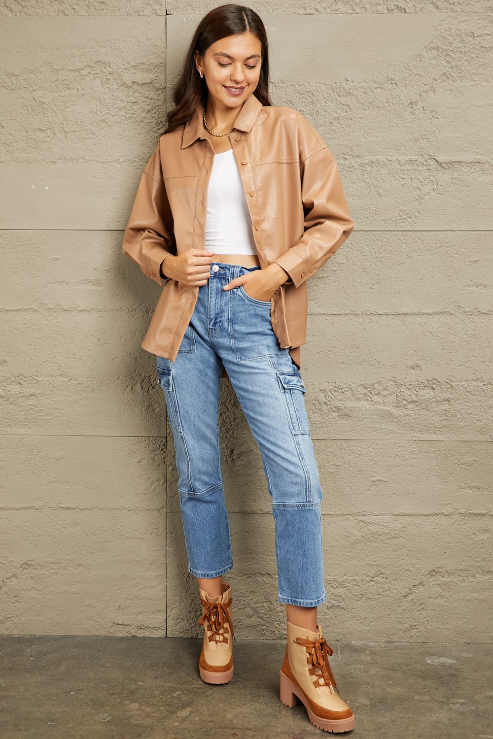 e.Luna Vegan Leather Button Down Shirt