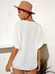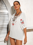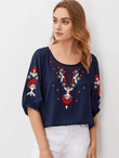 Embroidered Round Neck Flounce Sleeve Blouse