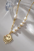 Evil Eye Pendant Pearl Stainless Steel Necklace