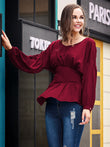 Exposed Seams Round Neck Dropped Shoulder Blouse