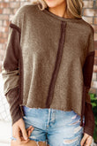 Exposed Seams Round Neck Dropped Shoulder Sweatshirt