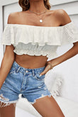 Eyelet Layered Off-Shoulder Cropped Blouse