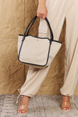 Fame Beach Chic Faux Leather Trim Tote Bag in Black