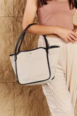 This beautifully crafted tote bag combines the luxurious look of genuine leather with the cruelty-free benefits of faux leather, making it an ethical and eco-friendly choice.This bag features a spacious main compartment that can accommodate all your daily essentials with ease. From your laptop, notebooks, and documents to your wallet, phone, and makeup, this tote bag offers ample space to keep everything organized. The interior is lined with a soft fabric that adds a touch of elegance and helps protect your belongings. The bag's exterior is adorned with faux leather trim, adding a refined touch to its overall design. The contrast between the faux leather and the durable canvas material creates a chic and versatile look that complements a variety of outfits, whether you're heading to the office, going for a casual outing, or attending a social event. Carrying this tote bag is a breeze, thanks to its sturdy and comfortable handles. The handles are designed to distribute weight evenly, making it comfortable to carry even when the bag is fully loaded. Additionally, the bag includes an adjustable and detachable shoulder strap, allowing you to wear it crossbody or over your shoulder for added convenience.