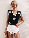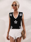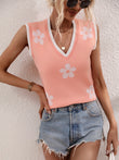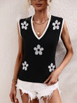 Floral Contrast Ribbed Trim Sweater Vest