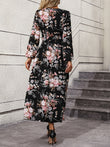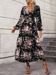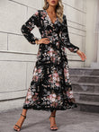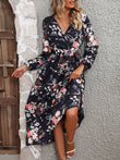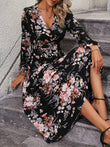 Floral Long Sleeve Surplice Neck Dress