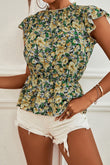 Floral Mock Neck Flutter Sleeve Peplum Top