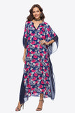 Floral Notched Neck Dolman Sleeve Maxi Dress