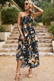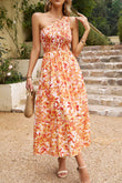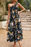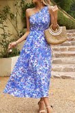 Floral One-Shoulder Sleeveless Dress with Pockets
