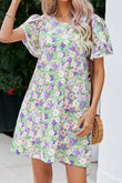 Floral Pom Pom Detail Petal Sleeve Dress