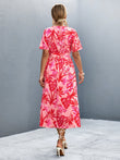 Floral Print High Slit Surplice Neck Tie Waist Midi Dress