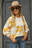 Floral Print Round Neck Dropped Shoulder Pullover Sweater