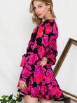 Floral Print Surplice Neck Long Sleeve Dress
