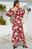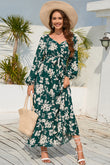 Floral Print V-Neck Long Sleeve Maxi Dress