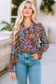 Floral Tie Neck Flounce Sleeve Blouse