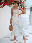 Floral Tie-Shoulder Sweetheart Neck Dress