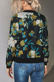 Floral Zip Up Ribbed Trim Bomber Jacket