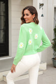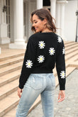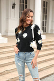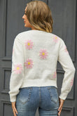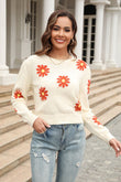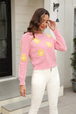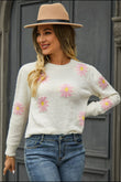Flower Pattern Round Neck Short Sleeve Pullover Sweater