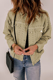 S: bust 43 in, shoulder 26 in, sleeve 17 in, length 23 in, hem width 38 in