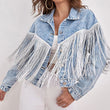 Fringe Detail Collared Neck Long Sleeve Denim Jacket