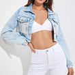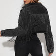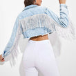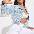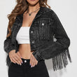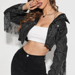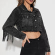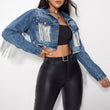 Fringe Detail Long Sleeve Cropped Denim Jacket