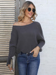 Full Size Horizontal Ribbing Dolman Sleeve Sweater