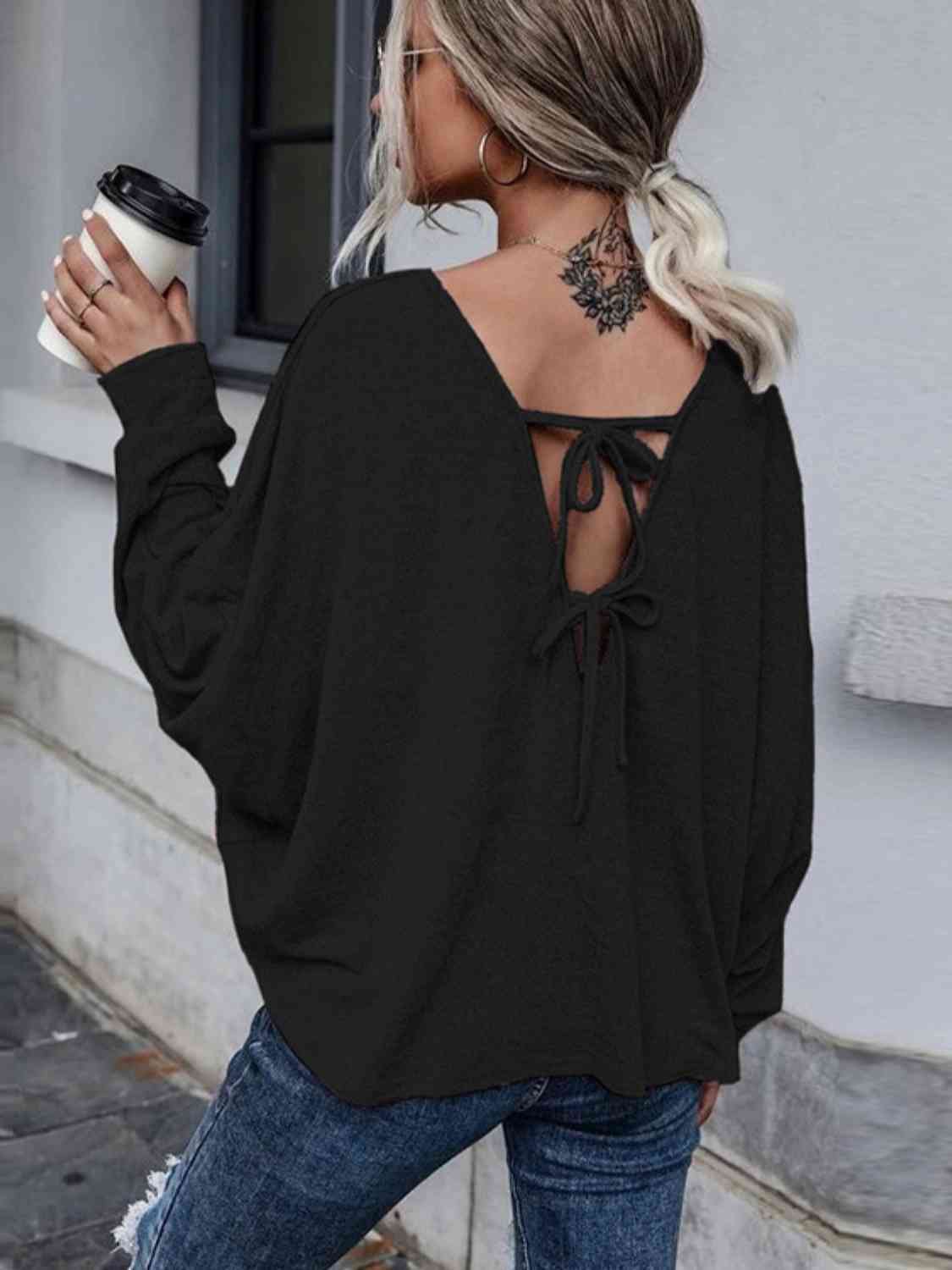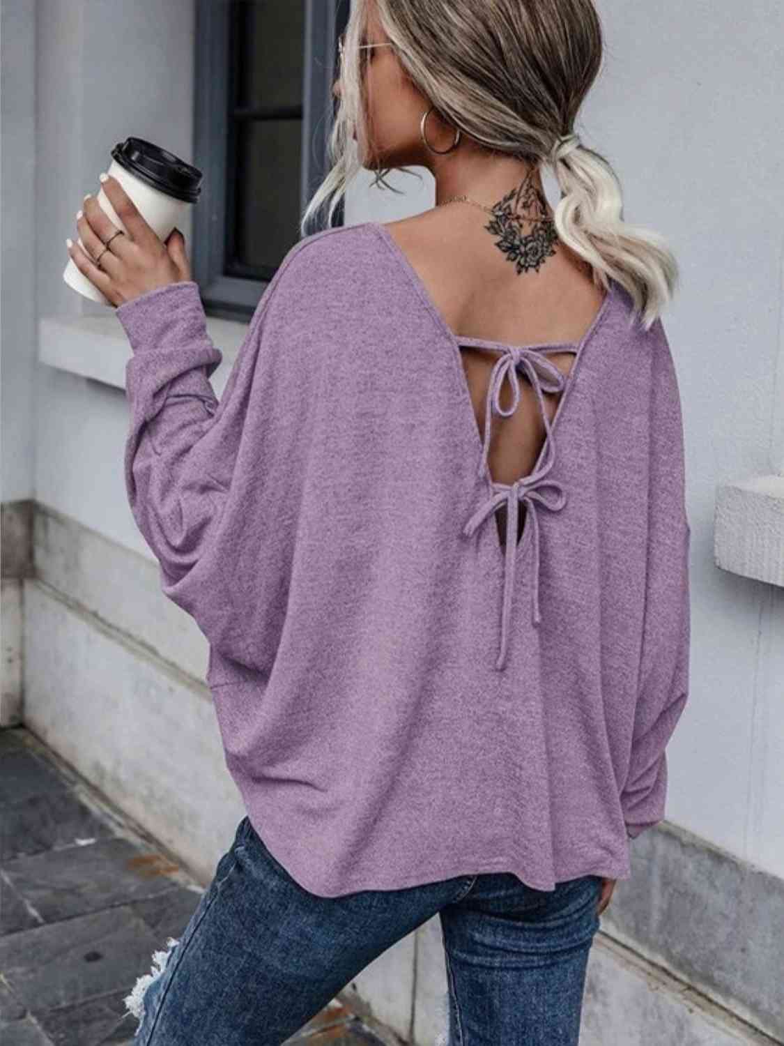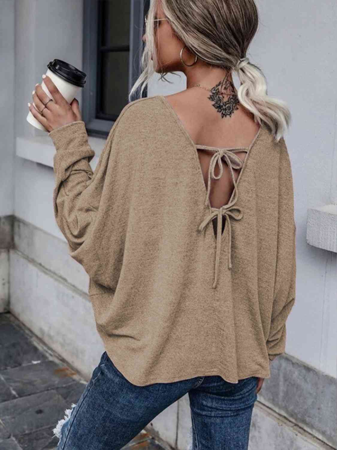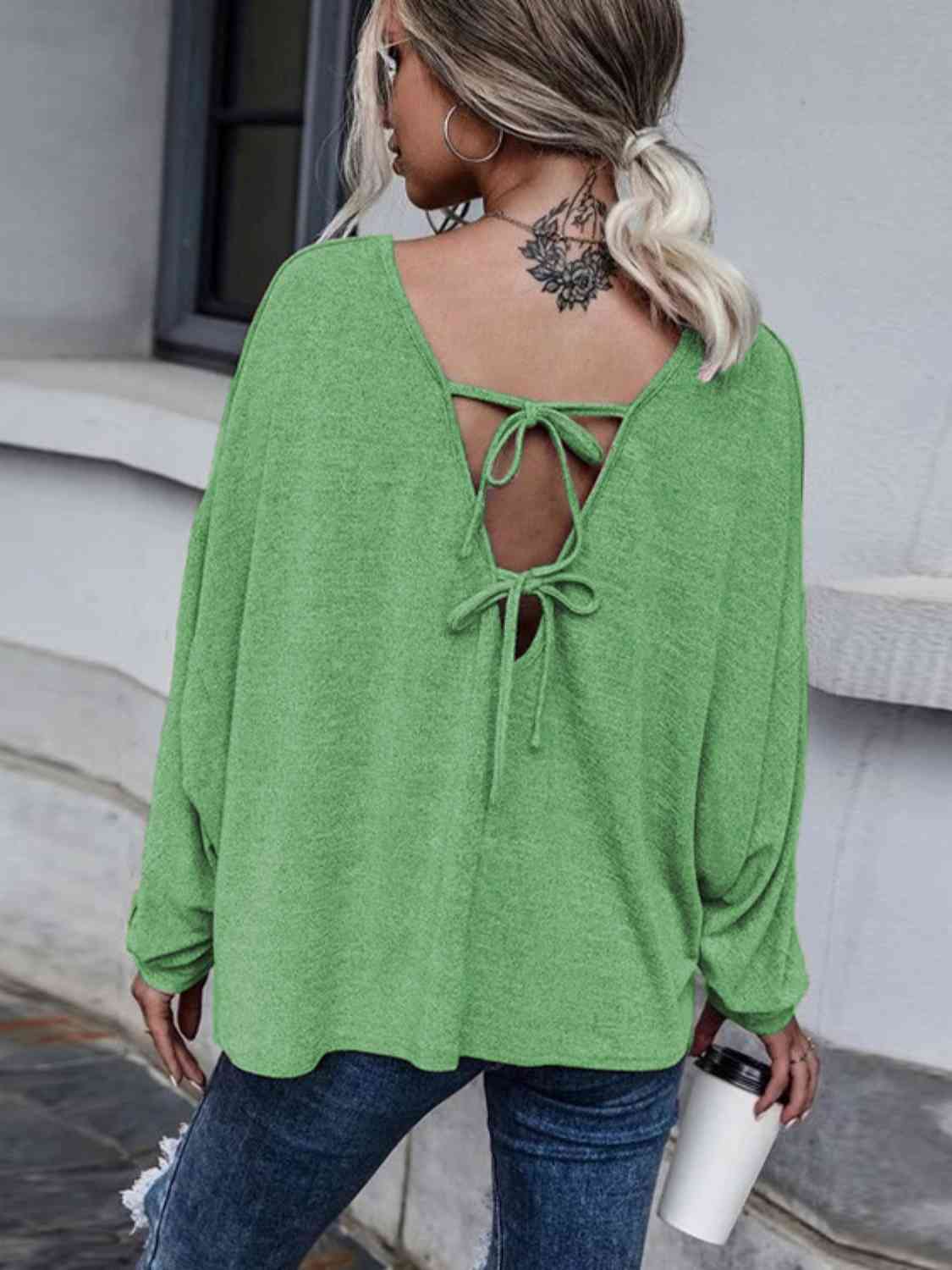 Full Size Round Neck Dropped Shoulder Tied T-Shirt