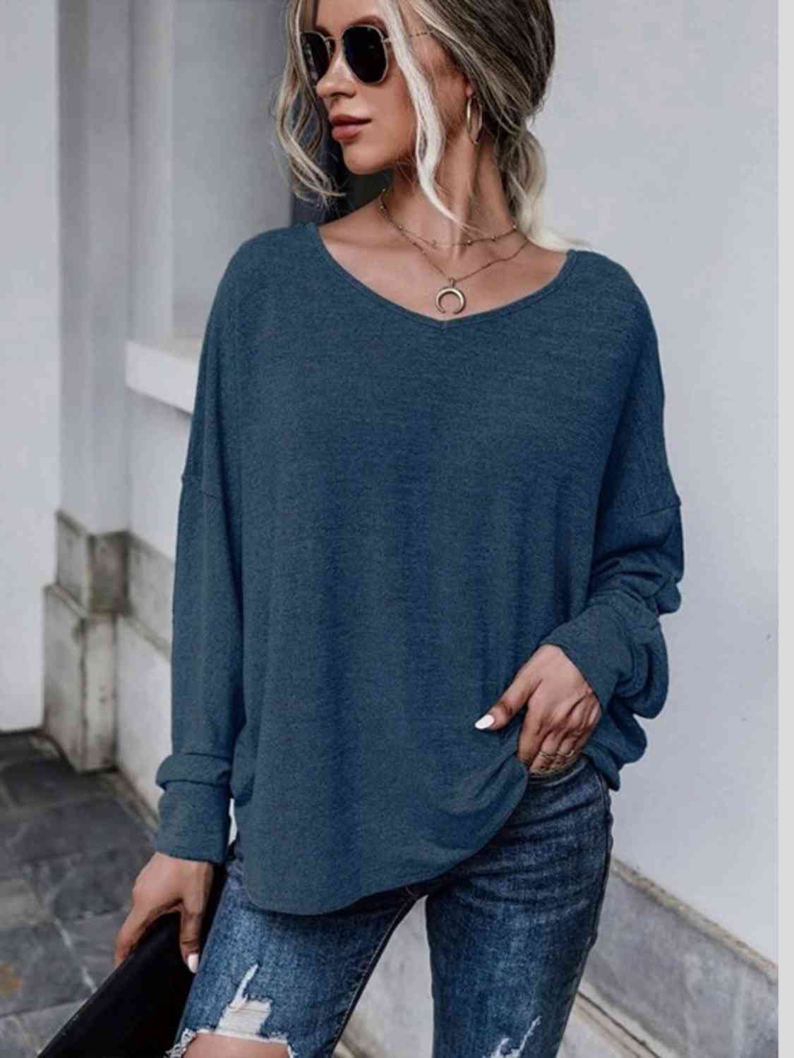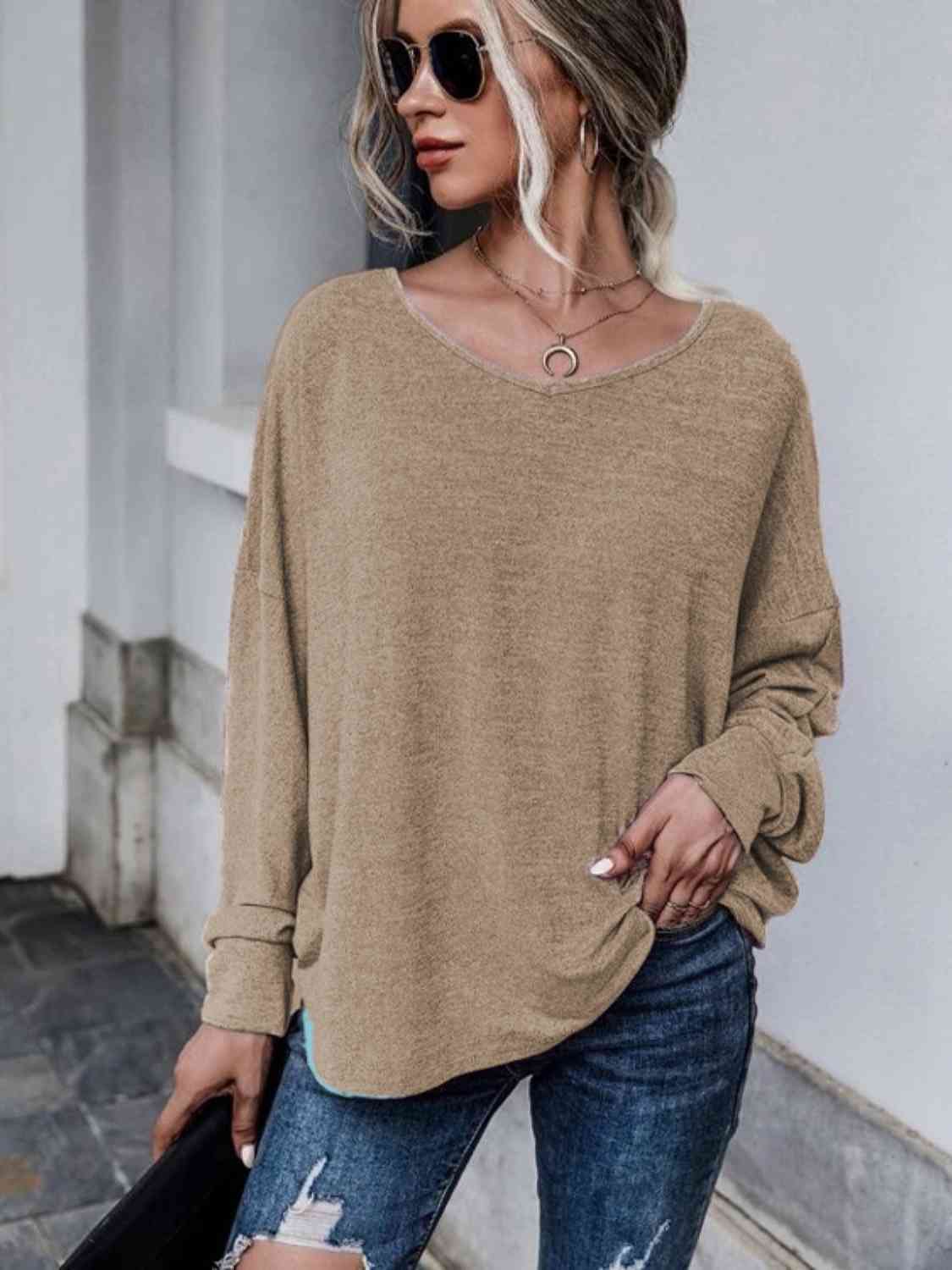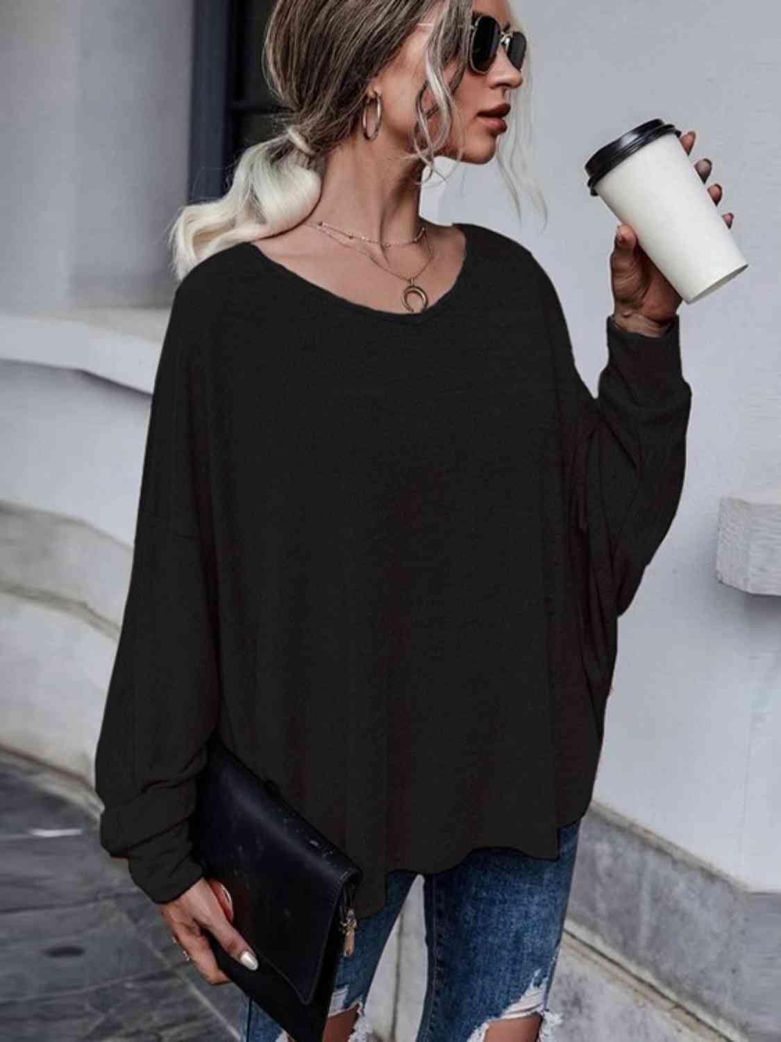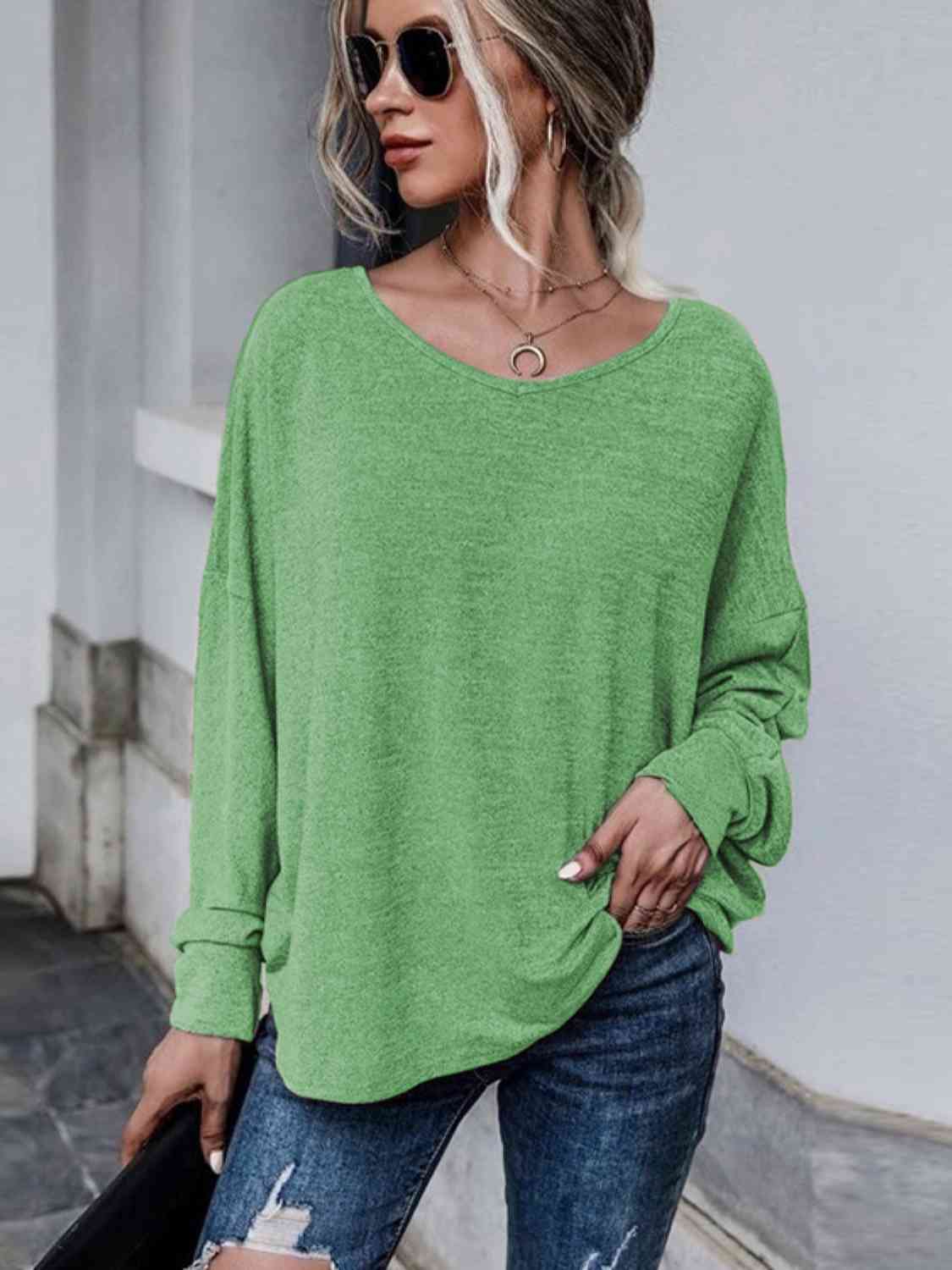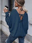 Full Size Round Neck Dropped Shoulder Tied T-Shirt