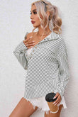 Full Size Striped Collared Top