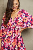 This dress features a flattering deep V-neckline, 3/4 sleeves with delicate elastic cuffs, and a charming elastic waist that enhances your silhouette while providing all-day comfort. The open back adds a touch of allure, making it an ideal choice for both casual outings and special occasions. Crafted to be the best in women's fashion, this dress showcases a delightful floral print that exudes a cute and feminine charm. Embrace effortless sophistication with this must-have wardrobe essential.