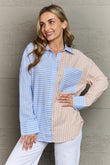 This eye-catching top is designed to make a bold fashion statement while offering comfort and functionality. This top ensures all-day comfort and durability. The vibrant multicolor striped pattern adds a playful and lively touch to any outfit, making it perfect for both casual and semi-formal occasions. Whether you're heading to work, going out with friends, or enjoying a weekend getaway, this top will effortlessly elevate your style. The button-down design allows for easy on-and-off and gives you the flexibility to wear it open or closed, depending on your preference. The buttons are carefully placed for a clean and polished look, while the pointed collar adds a touch of sophistication.