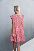 Gingham Ruffle Shoulder Tiered Dress