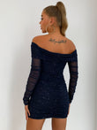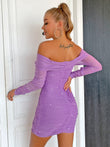 Glitter Off-Shoulder Ruched Bodycon Dress
