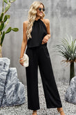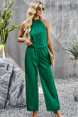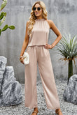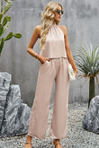 Grecian Neck Sleeveless Pocketed Top and Pants Set