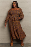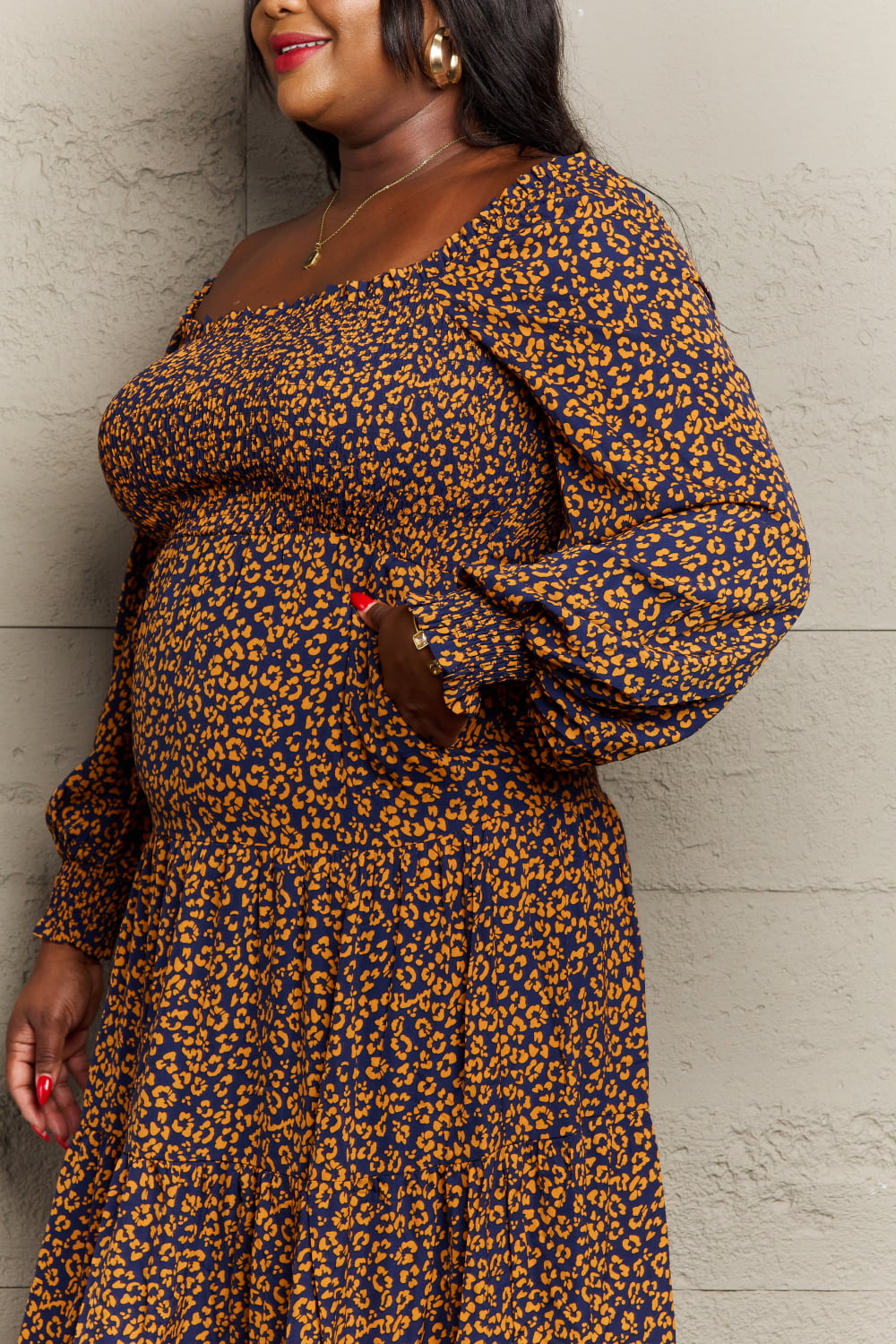 This dress features a beautifully smocked bodice and neckline, ensuring a flattering fit that accentuates your curves in all the right ways. The eye-catching animal print adds a touch of wild elegance to your wardrobe, while the ribbon tie on the back adds a charming detail to the overall look. Whether you're heading to a summer soirée or a casual day out, this dress promises to make you the center of attention with its timeless style and effortless charm. Embrace your inner fashionista and make a statement in this must-have maxi dress.