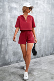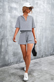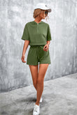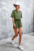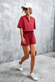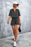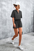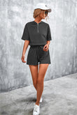 Half Zip Cropped Hooded T-Shirt and Shorts Set