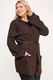 Plus Size Ribbed Wrap Cardigan With Waist Belt