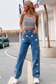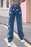 Heart Print Buttoned Jeans