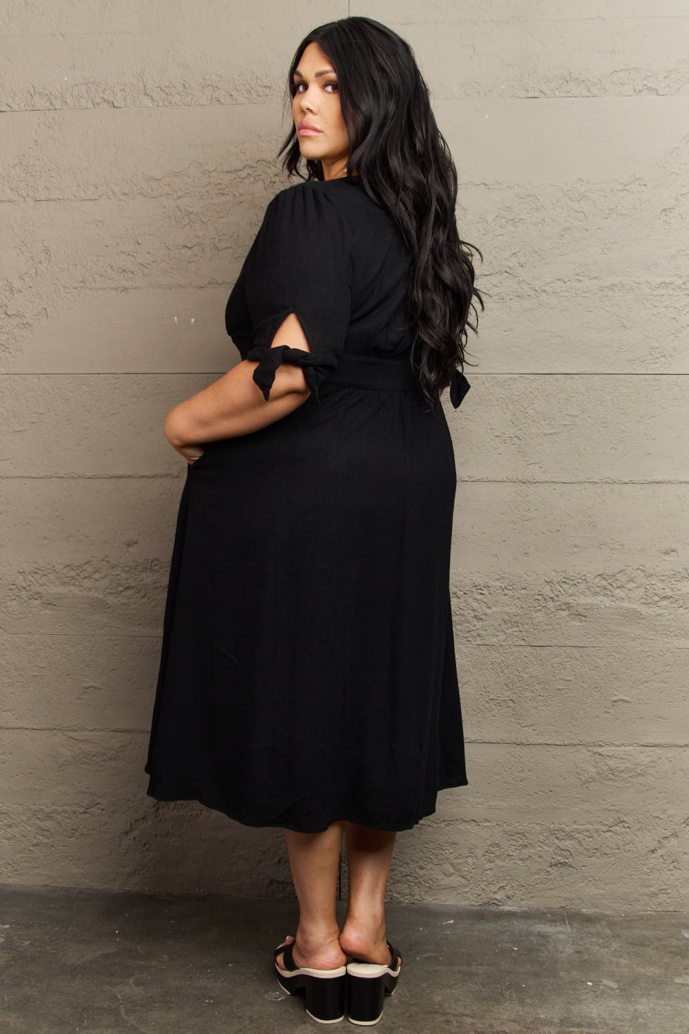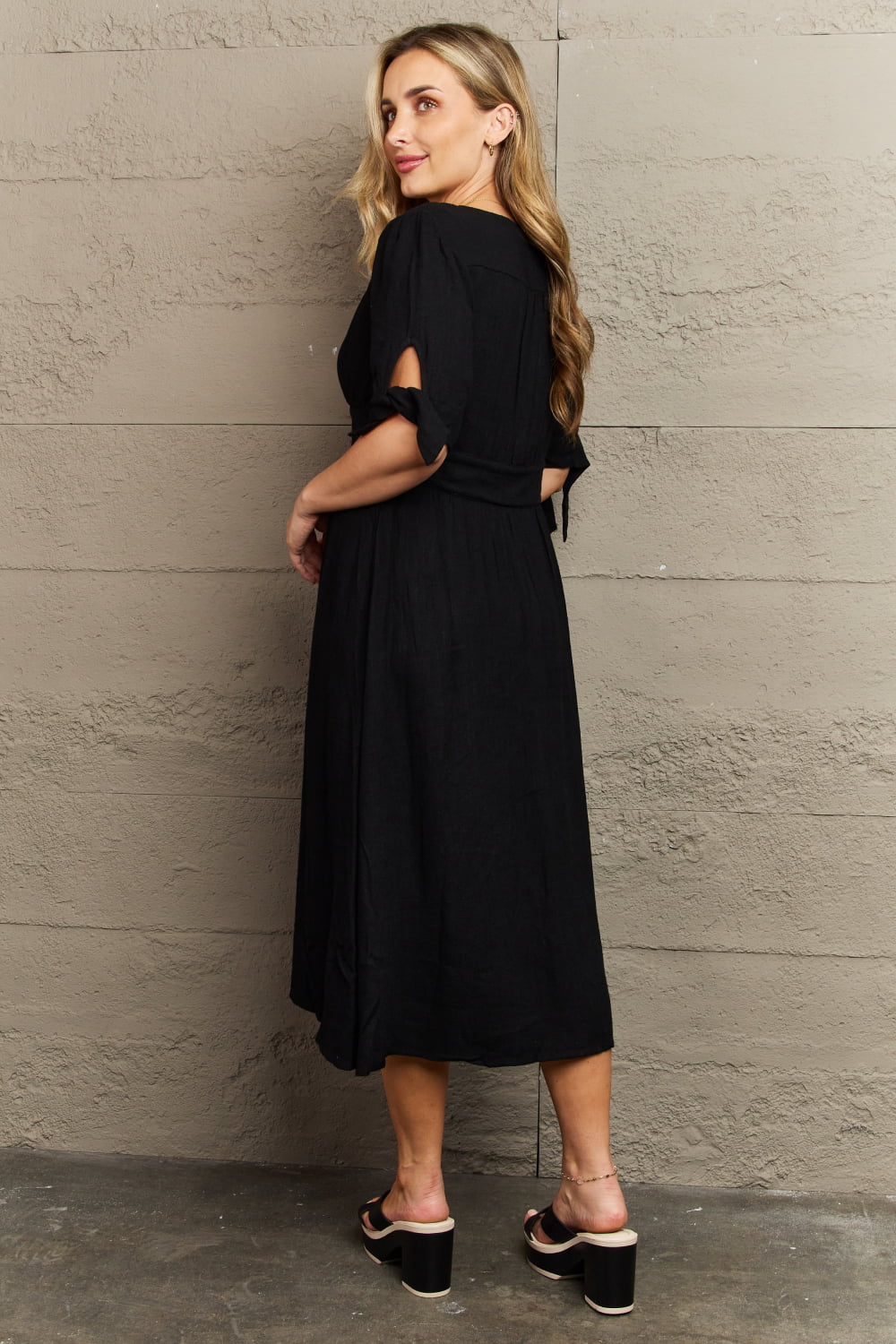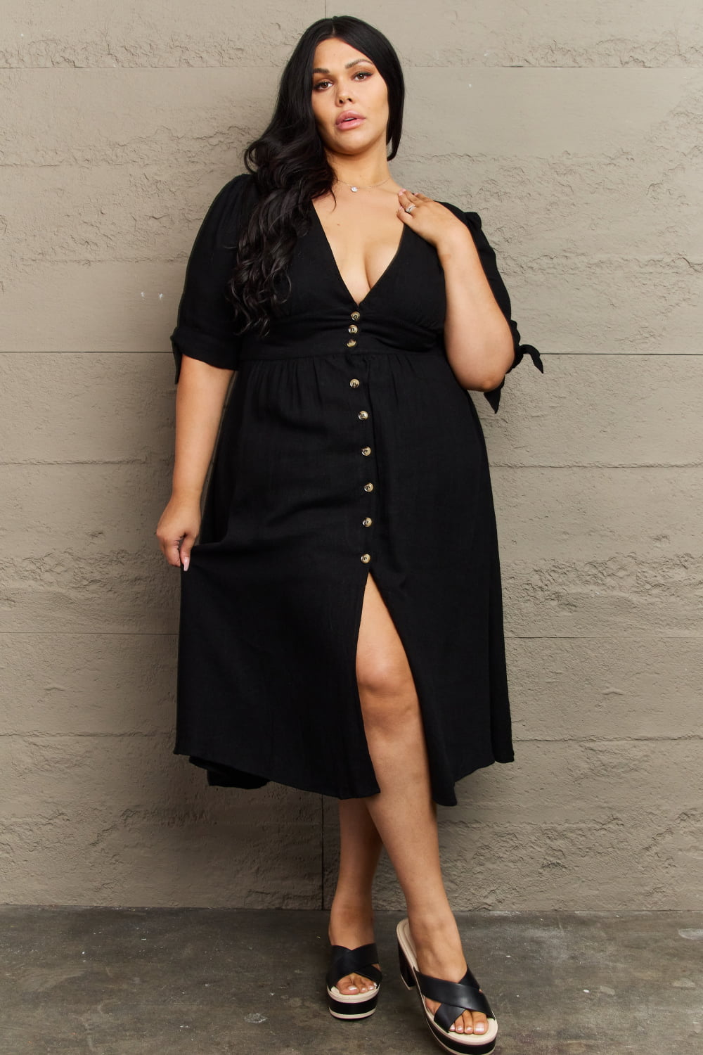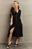 HEYSON Downtown Girl Textured Linen Button Down Midi Dress
