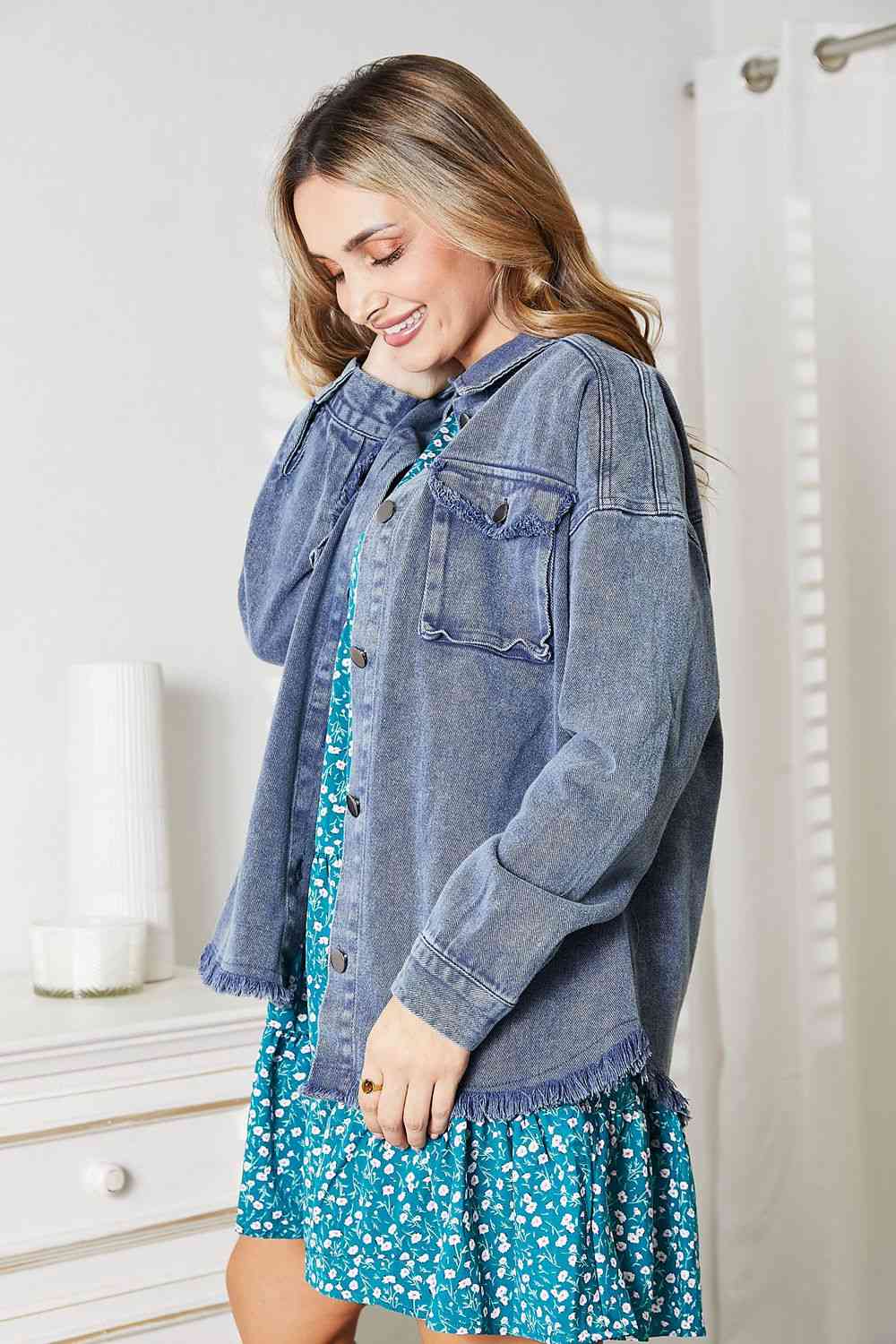 HEYSON Full Size Mineral-Washed Button-Down Denim Jacket