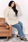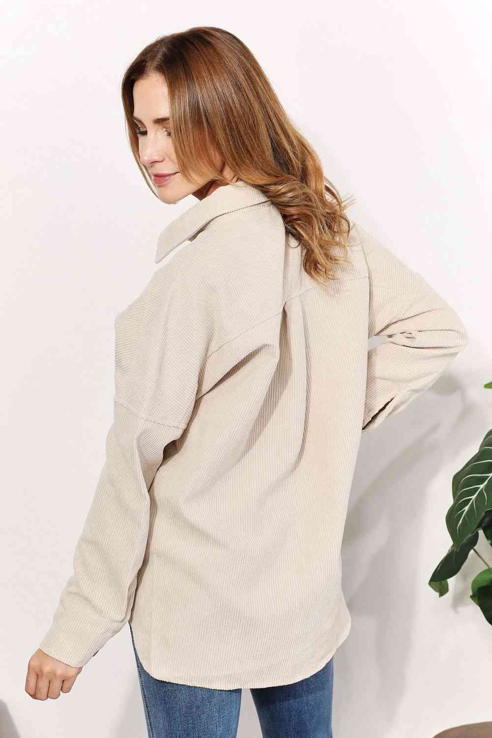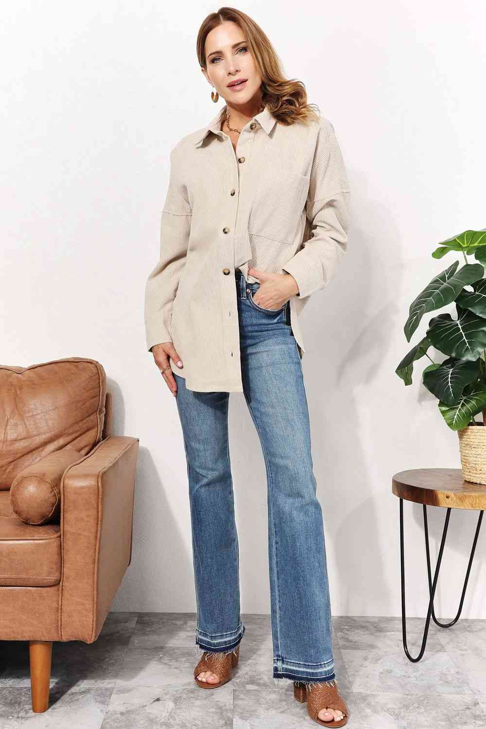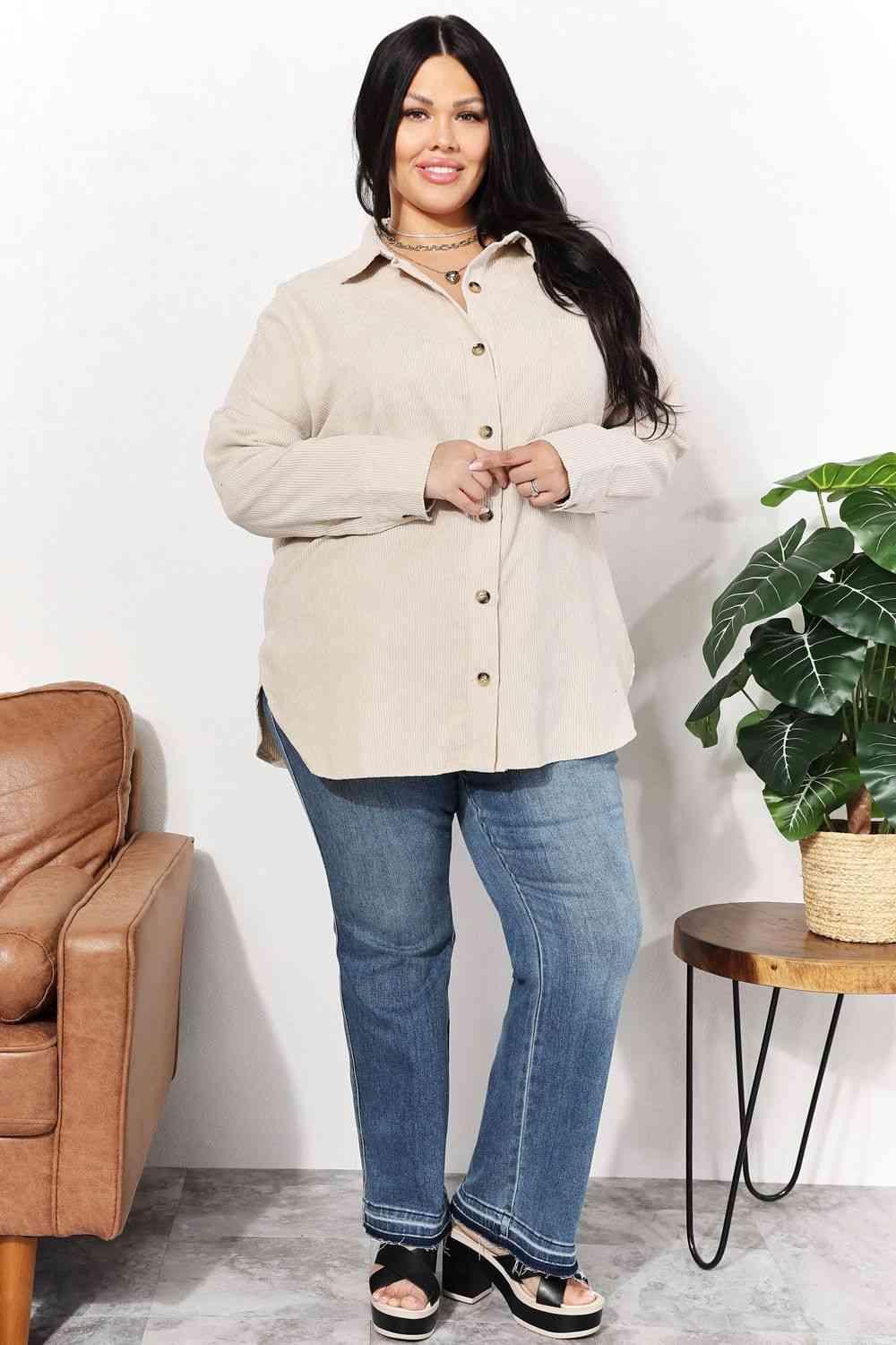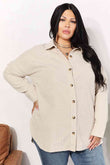 HEYSON Full Size Oversized Corduroy Button-Down Tunic Shirt with Bust Pocket