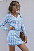 Amari Houndstooth Button Front Sweater and Skirt Set