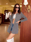 Houndstooth Open Front Longline Jacket