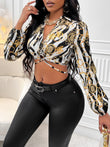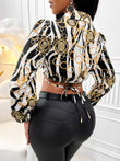 Johnny Collar Tie Back Cropped Blouse