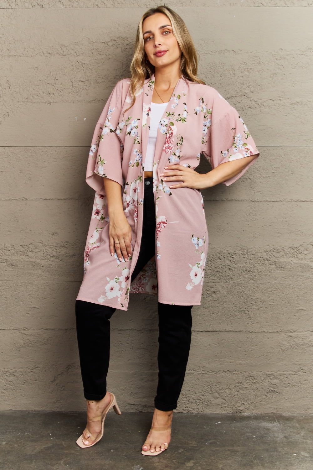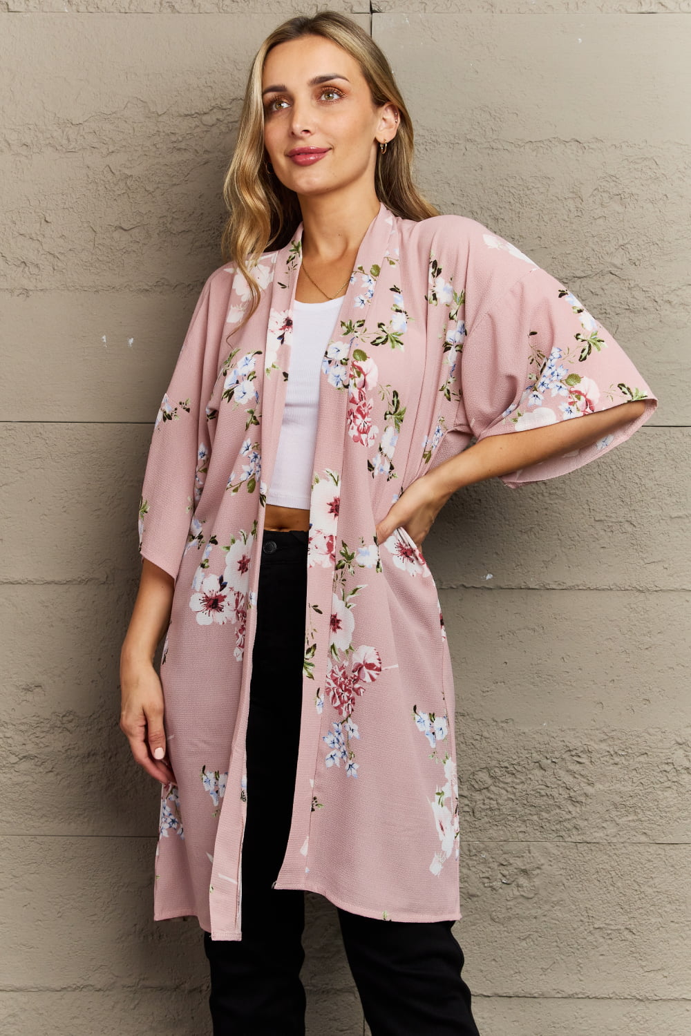 Crafted from the finest lightweight fabric, this kimono top drapes gracefully, creating a captivating silhouette for any body shape. The mesmerizing floral pattern in soft, pastel hues exudes a sense of tranquility and femininity, making it perfect for casual outings or dressy occasions. Whether you're strolling through the city streets or attending a garden party, this kimono will effortlessly elevate your style and leave a lasting impression. Embrace the beauty of nature and fashion with this delightful wardrobe essential.