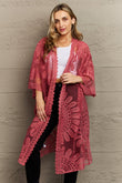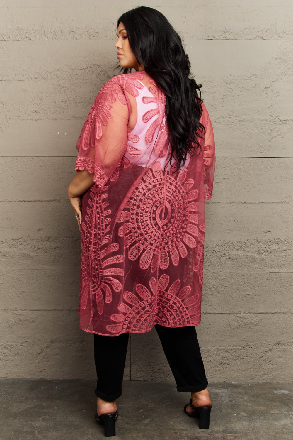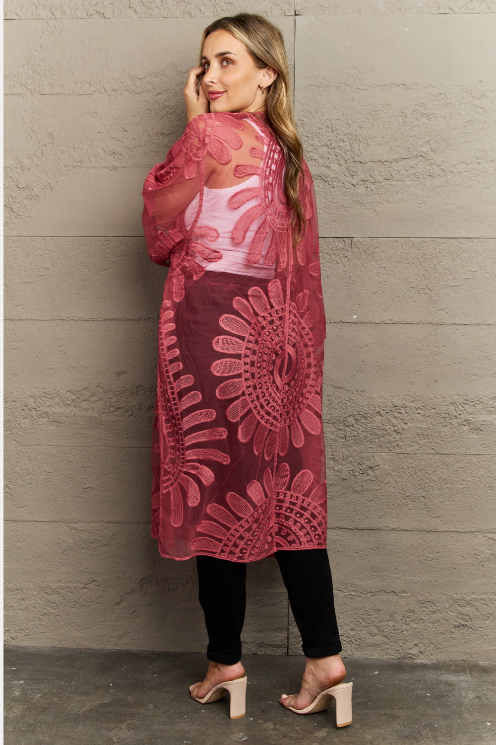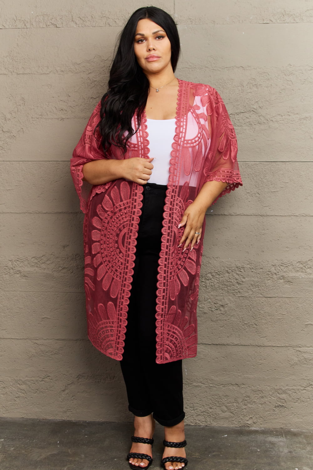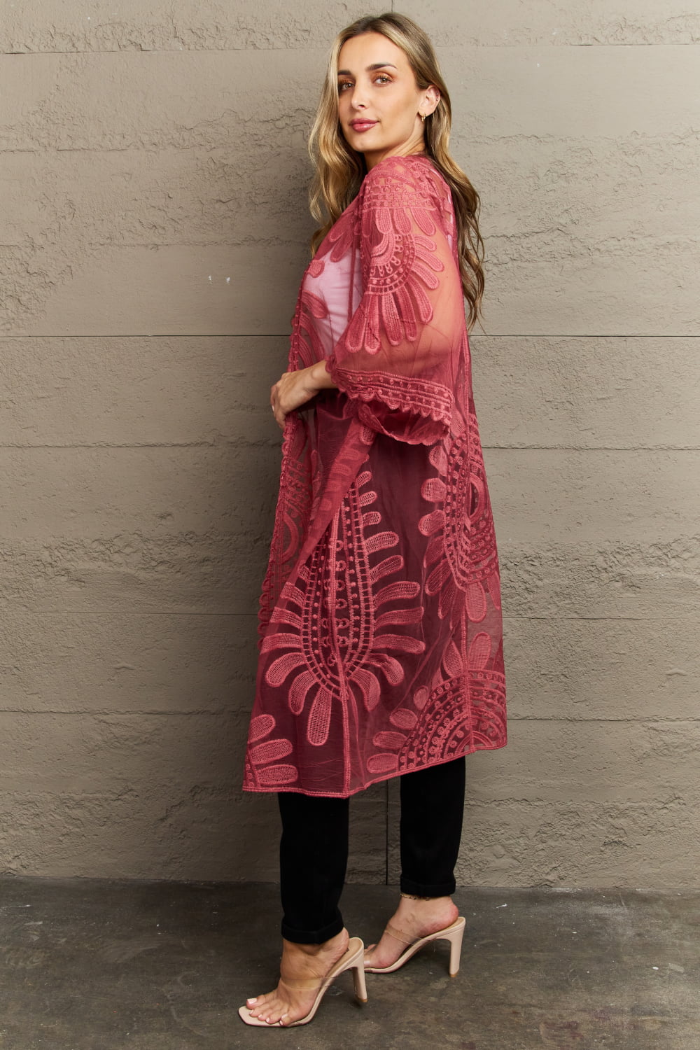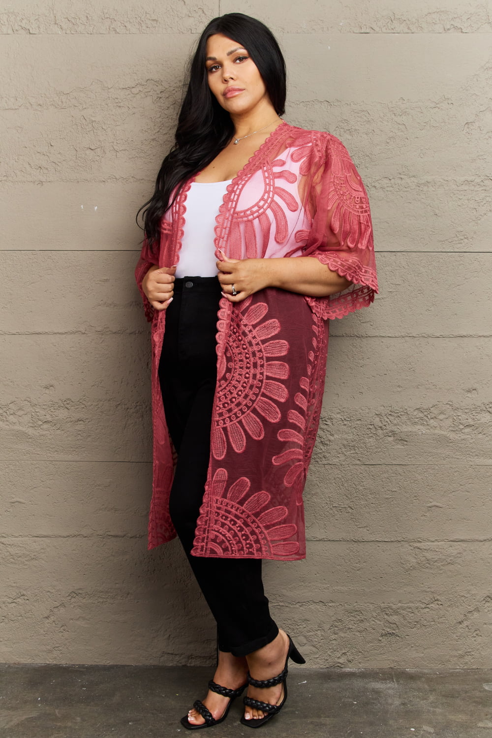Crafted from exquisite lace fabric, this duster kimono exudes femininity and charm. Its flowing silhouette and delicate lace detailing create a graceful and flattering look for any occasion. Whether you're dressing up for a special event or adding a touch of glamour to your everyday outfit, this kimono is the perfect choice. Elevate your wardrobe with this timeless piece that effortlessly enhances your fashion statement.