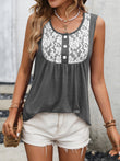 Lace Contrast Scoop Neck Tank
